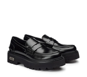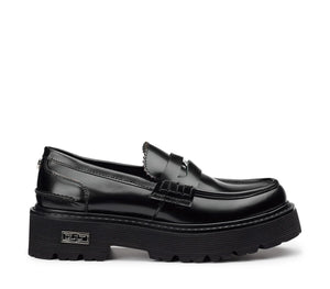 Intramontabili i mocassini della linea Slash firmati da Cult per questo inverno. In pelle spazzolata nera, questi mocassini con spessa suola in EVA, sono un must per la comodità e presentano l'iconica targhetta logata metallica. Da indossare sotto gonne o pantaloni per un look rock chic.